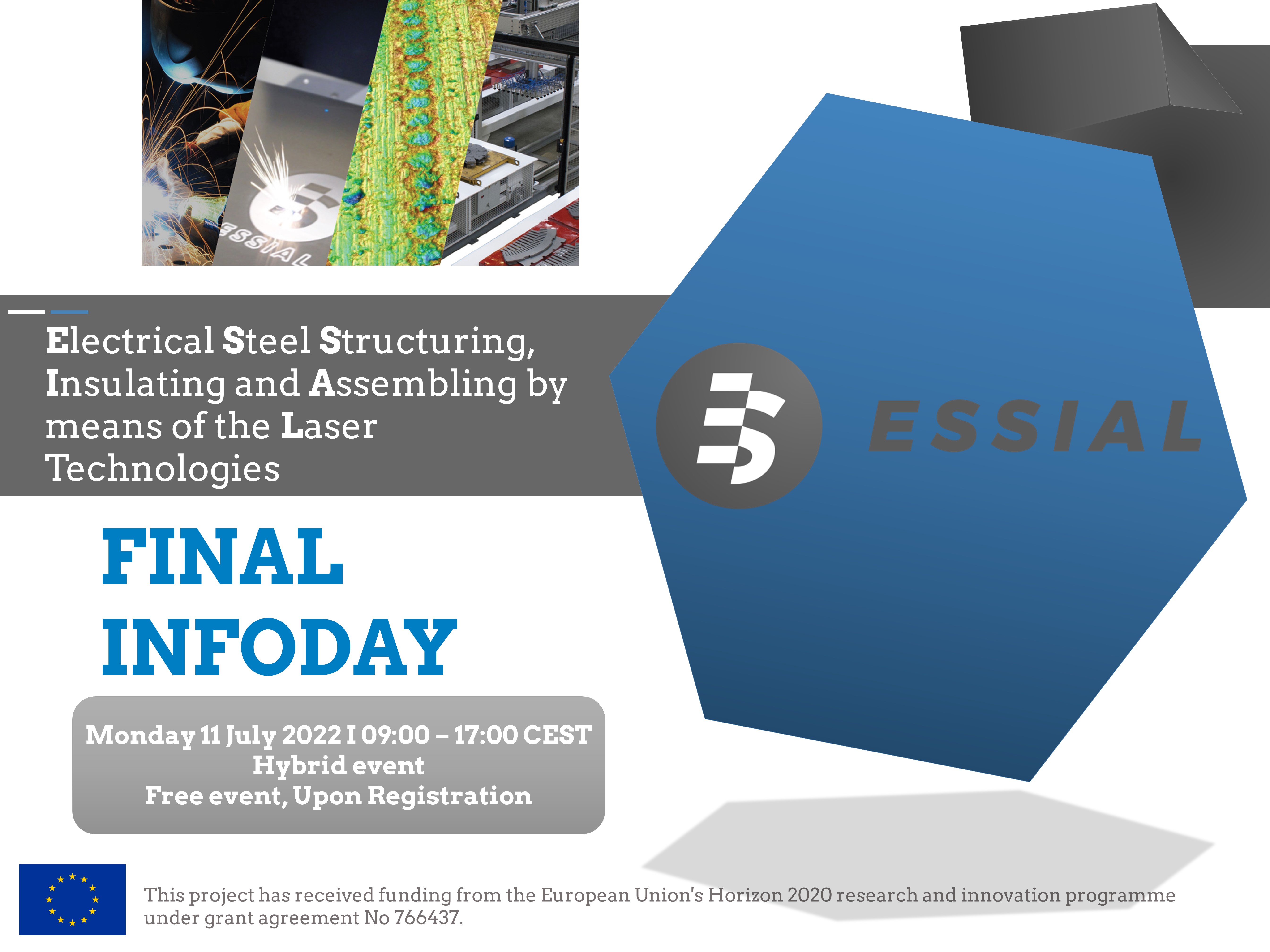 This special event will be the occasion to present the main results of the project and to discuss the innovative laser technologies for electrical steel, equipment and components developed within the ESSIAL project.